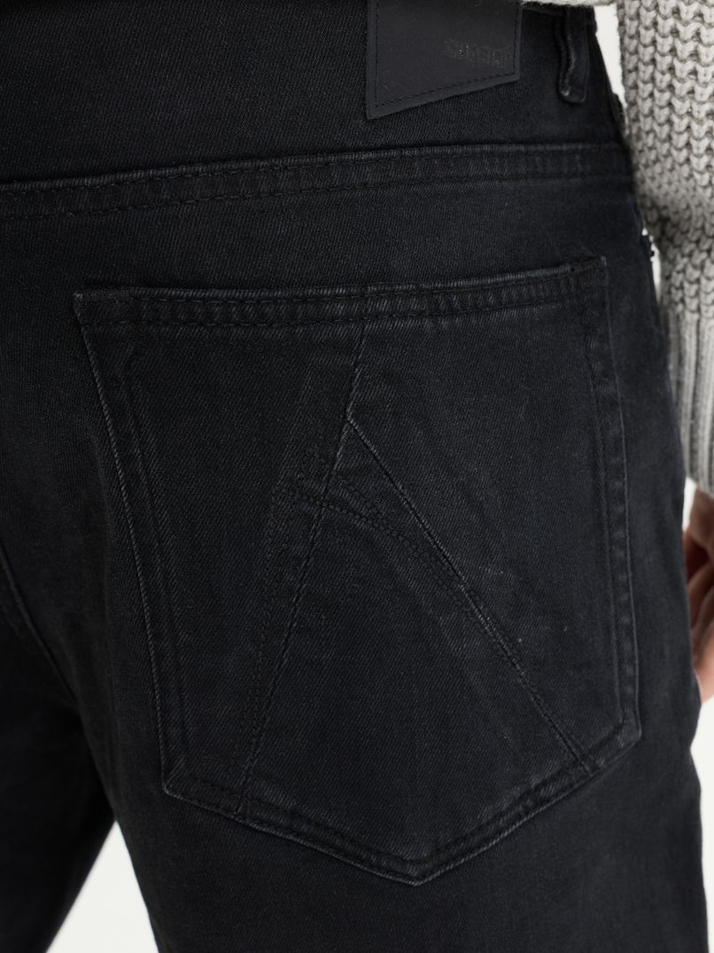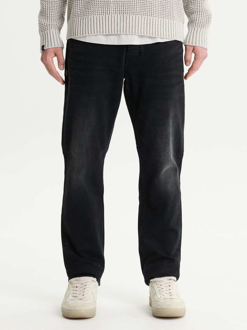 Diese 5-Pocket-Jeans hat eine dunkle Waschung und einen Worn-in-Look. Auf den Gesäßtaschen, an der Seite des Oberschenkels und an den Knöpfen findest du die charakteristischen CHASIN’-Details, und der Hosenschlitz ist mit einem Knopfverschluss versehen.